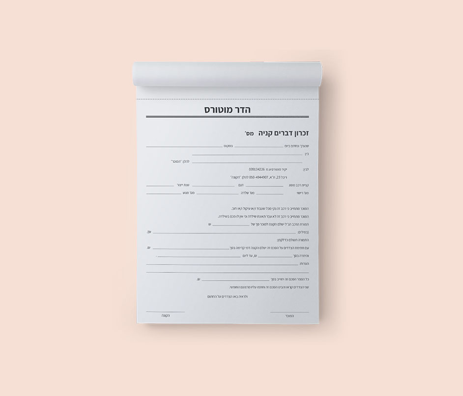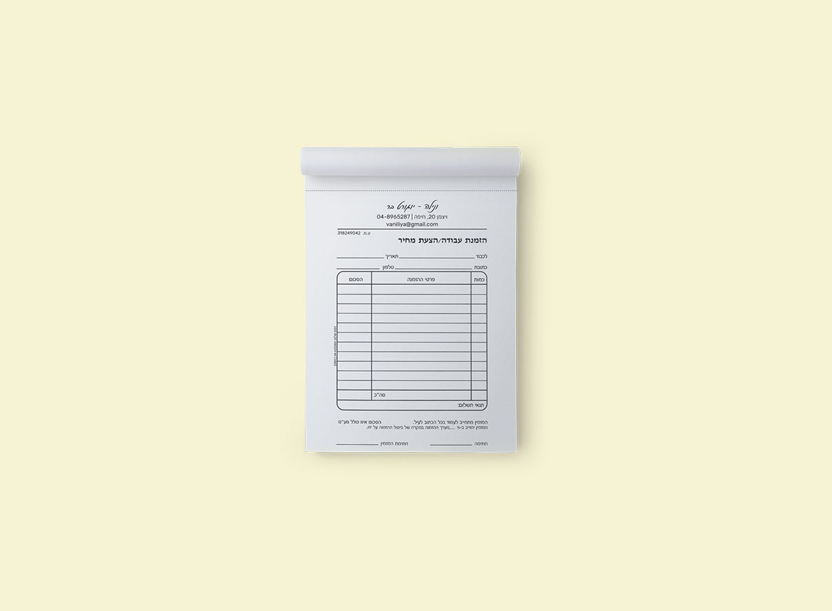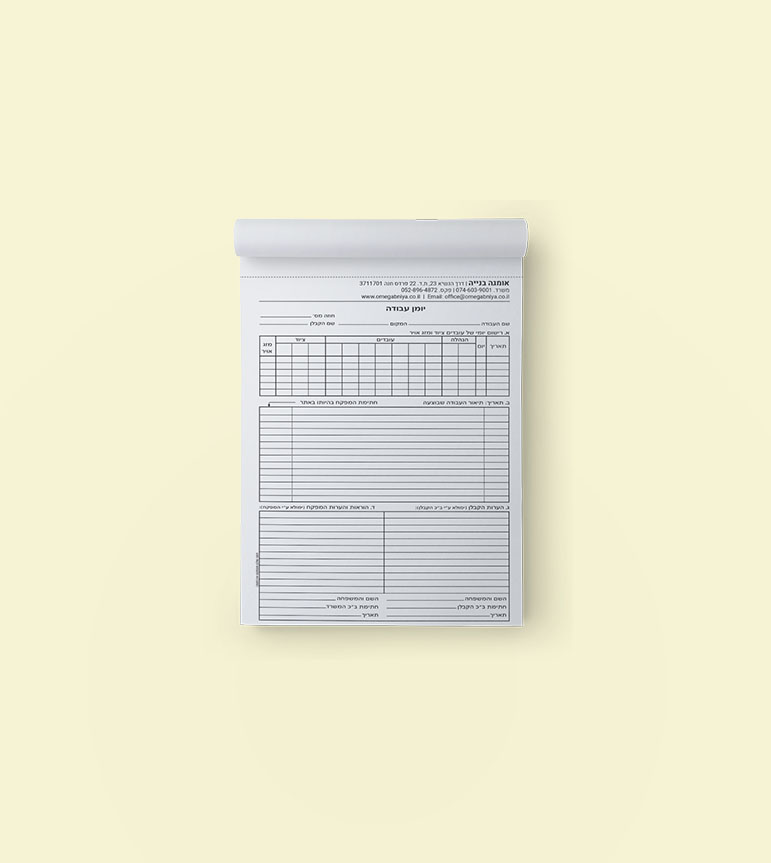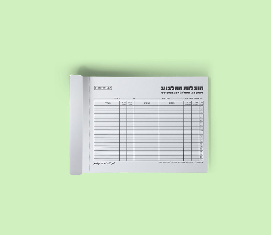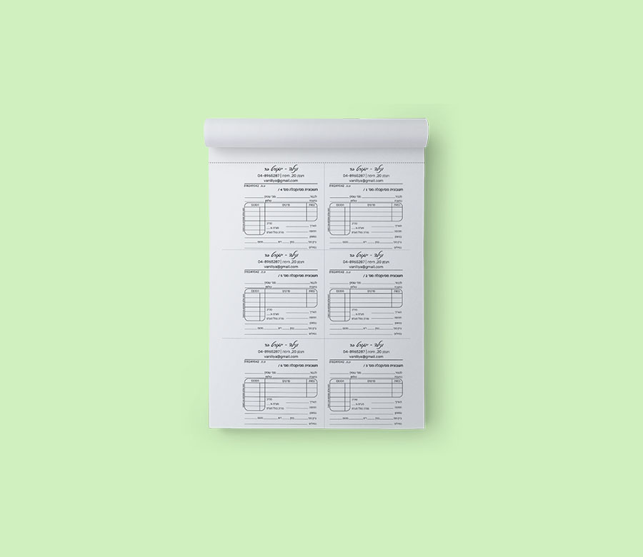 הכירו את דפוס שלום – מבתי הדפוס הוותיקים והמובילים בישראל. דפוס שלום מציע לכם הדפסת פנקסים בסטנדרט גבוה, הן מבחינת איכות חומר הגלם, הדפסת הלוגו והכיתוב הברור והן מבחינת השירות, שנותר חם ואישי לכל לקוח, בהזמנות בכל היקף. הדפסת פנקסים בדפוס שלום מאפשרת לכם לקבל מוצר מעולה המשמש אתכם לאורך זמן ומסייע לכם להגיש ללקוחות שלכם חשבוניות מסודרות, כחלק ממערך השירות שלכם.